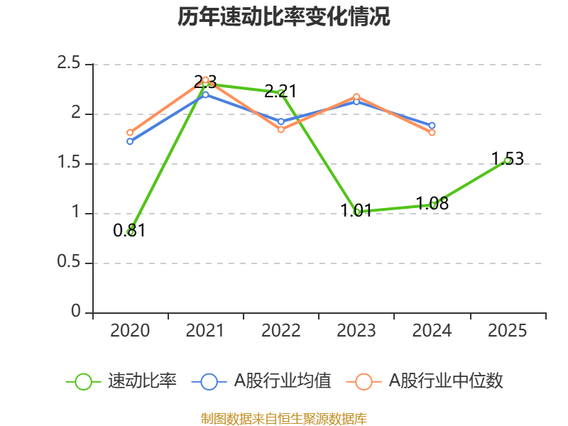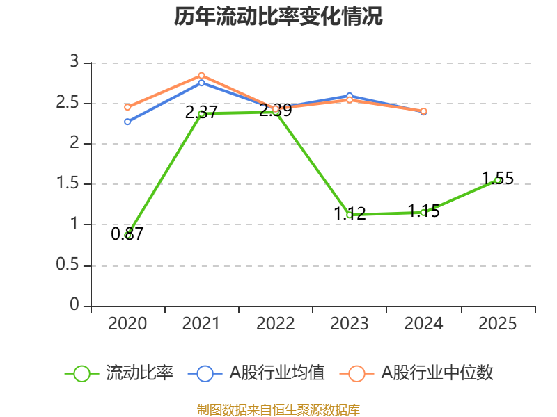 2025年,公司流动比率为1.55,速动比率为1.53。