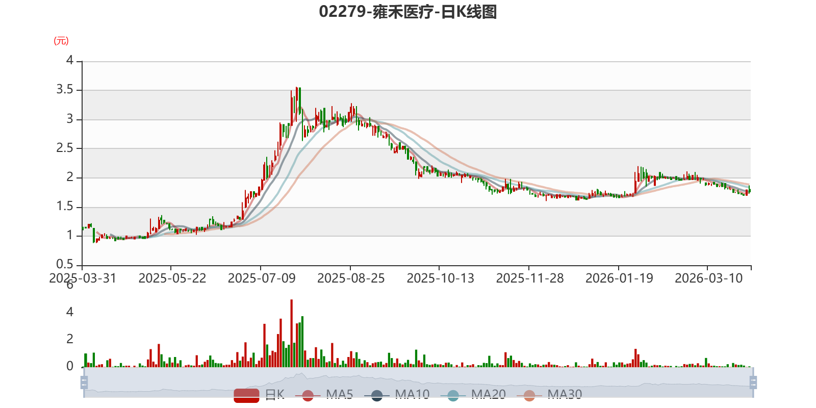 以3月31日收盘价计算,雍禾医疗目前市净率(TTM)约1.14倍,市销率(TTM)约0.48倍。
