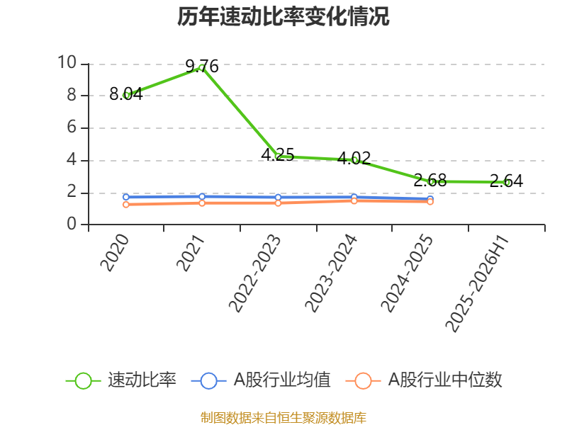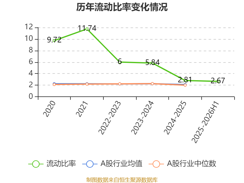 报告期内,公司流动比率为2.67,速动比率为2.64。