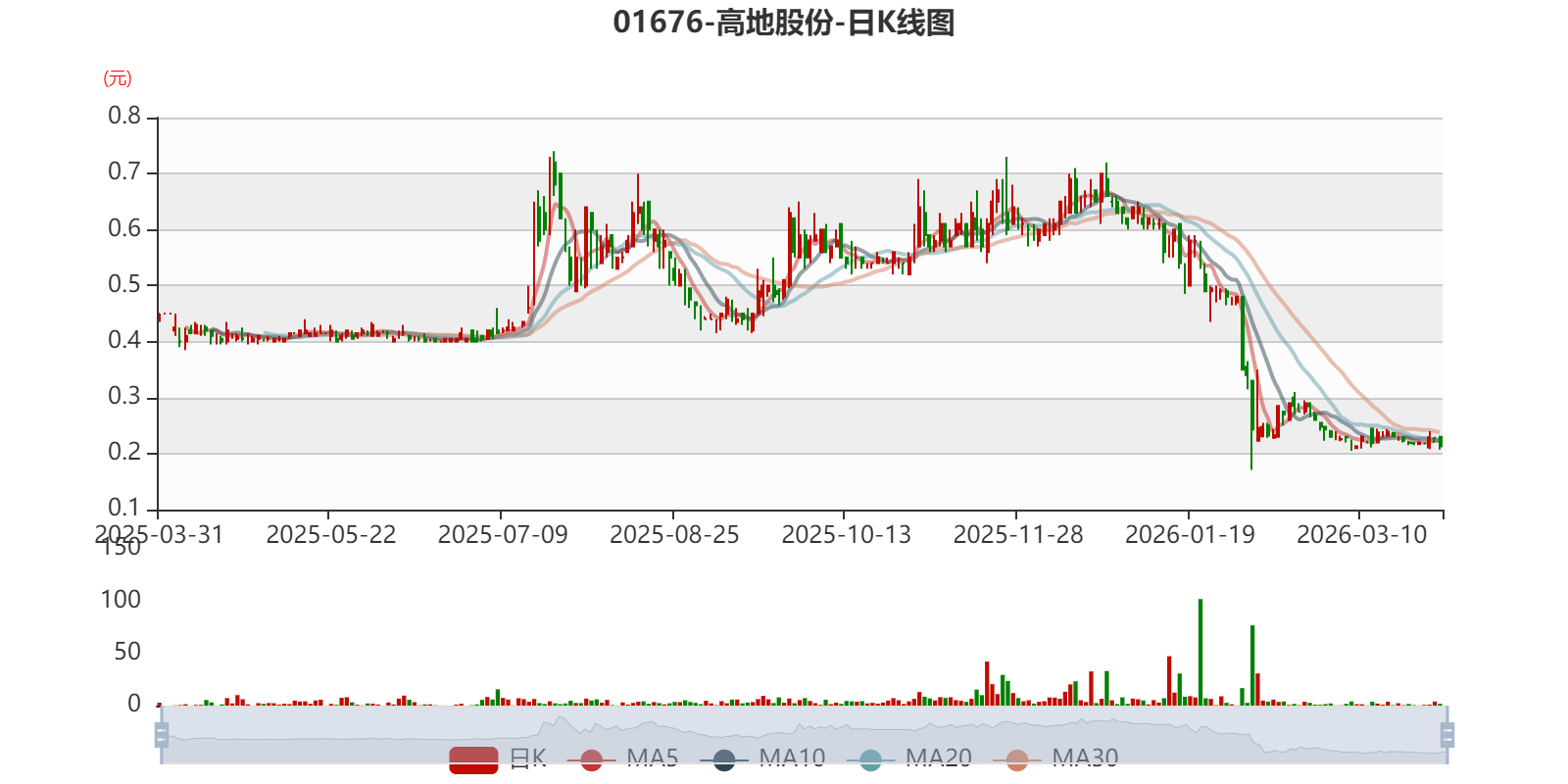 以3月31日收盘价计算,高地股份目前市净率(TTM)约0.6倍,市销率(TTM)约0.1倍。