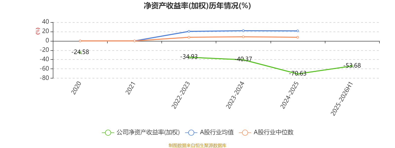 报告期内,公司平均净资产收益率为-53.68%,较上年同期下降29.35个百分点。