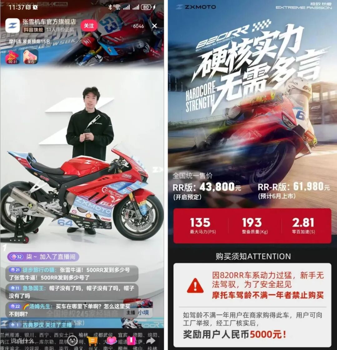 “订单量迎来爆发式增长,820RR车型销量增长200%,500RR销量增长近100%。”张雪3月30日透露。