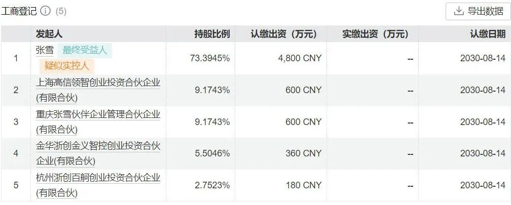 张雪为实际控制人,持股73.4%,握有绝对控制权。