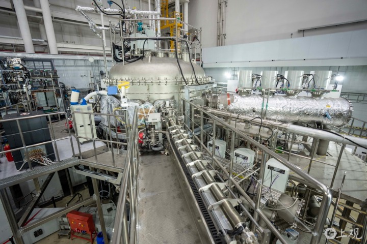 位于上海临港能量奇点实验厂房内的全球首台全高温超导托卡马克装置——“洪荒70”。