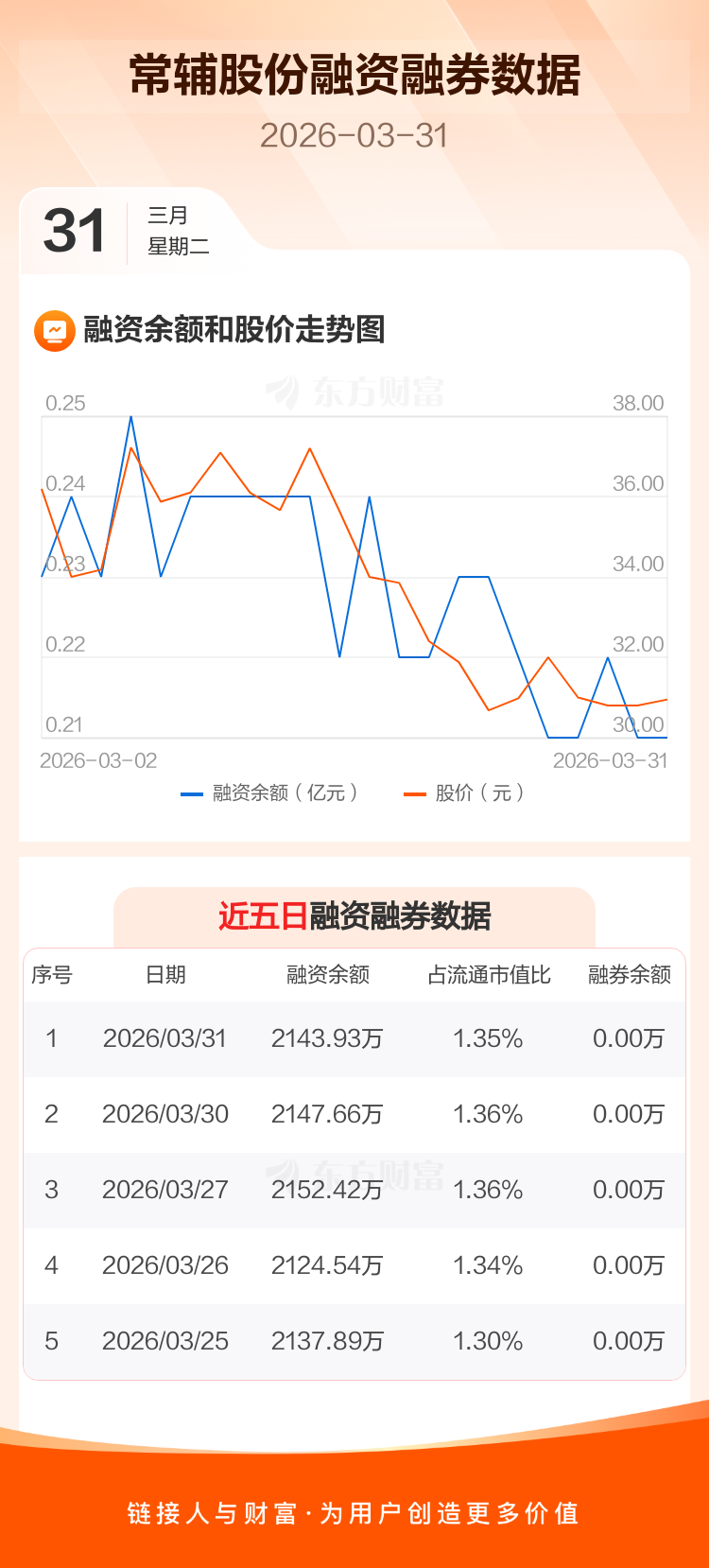常辅股份:融资净偿还3.73万元,融资余额2143.93万元