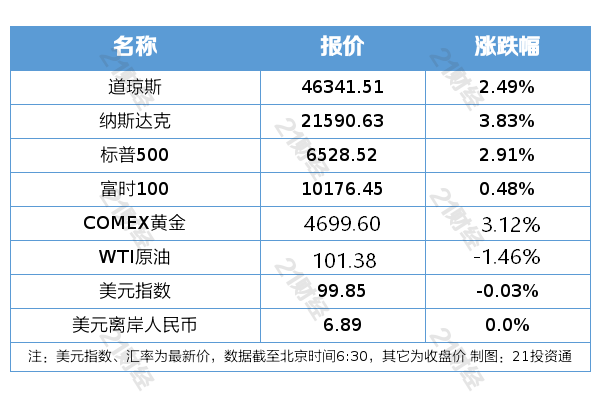 纽约股市三大股指3月31日上涨。截至当天收盘,道琼斯工业平均指数比前一交易日上涨1125.37点,收于46341.51点,涨幅为2.49%;标准普尔500种股票指数上涨184.80点,收于6528.52点,涨幅为2.91%;纳斯达克综合指数上涨795.99点,收于21590.63点,涨幅为3.83%。