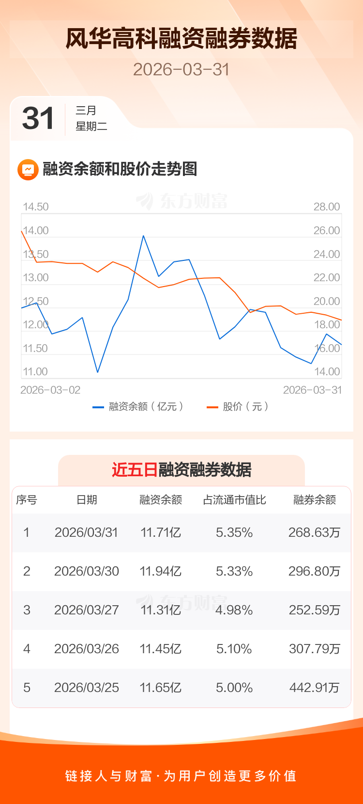 交易所最新数据显示,风华高科于2026年3月31日获融资买入6724.73万元,融资偿还9000.43万元,当日融资净偿还2275.69万元。目前,该股融资余额11.71亿,占流通市值比例为5.35%。