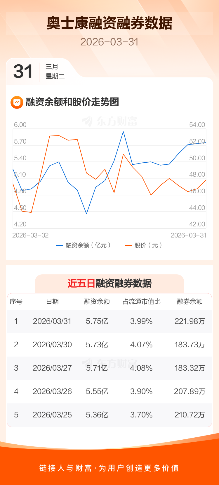 交易所最新数据显示,奥士康于2026年3月31日获融资买入4417.52万元,融资偿还4222.95万元,当日融资净买入194.57万元。目前,该股融资余额5.75亿,占流通市值比例为3.99%。