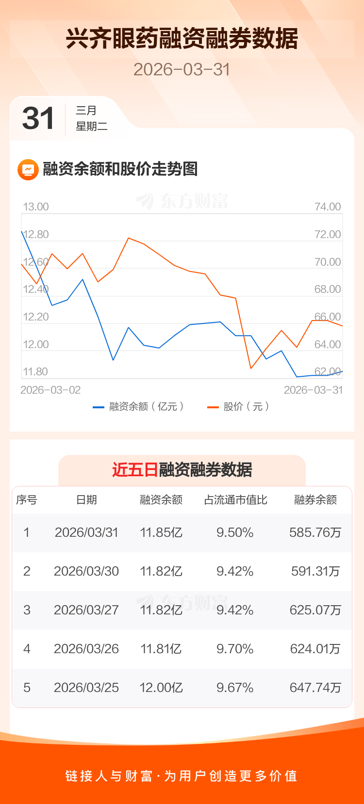交易所最新数据显示,兴齐眼药于2026年3月31日获融资买入2571.79万元,融资偿还2351.25万元,当日融资净买入220.54万元。目前,该股融资余额11.85亿,占流通市值比例为9.50%。