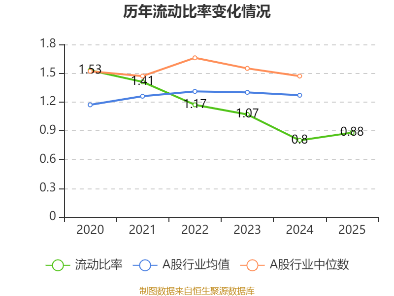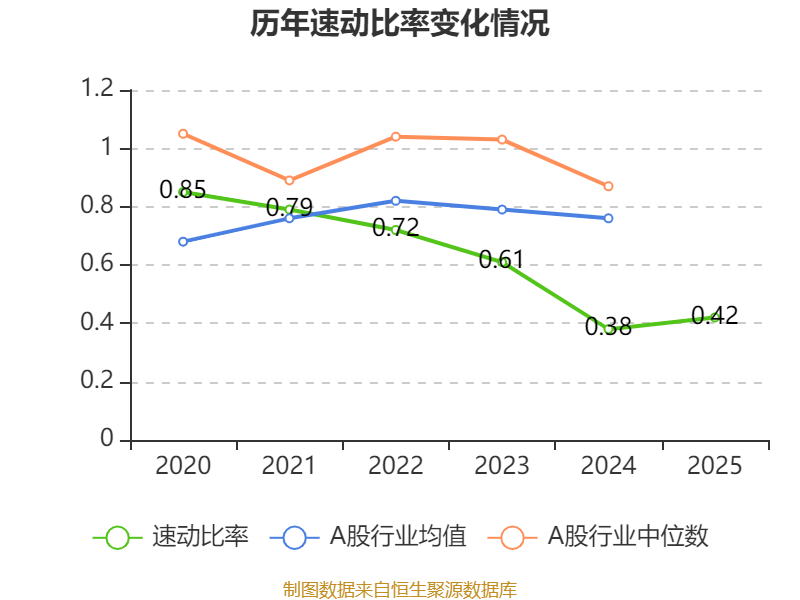 2025年,公司流动比率为0.88,速动比率为0.42。