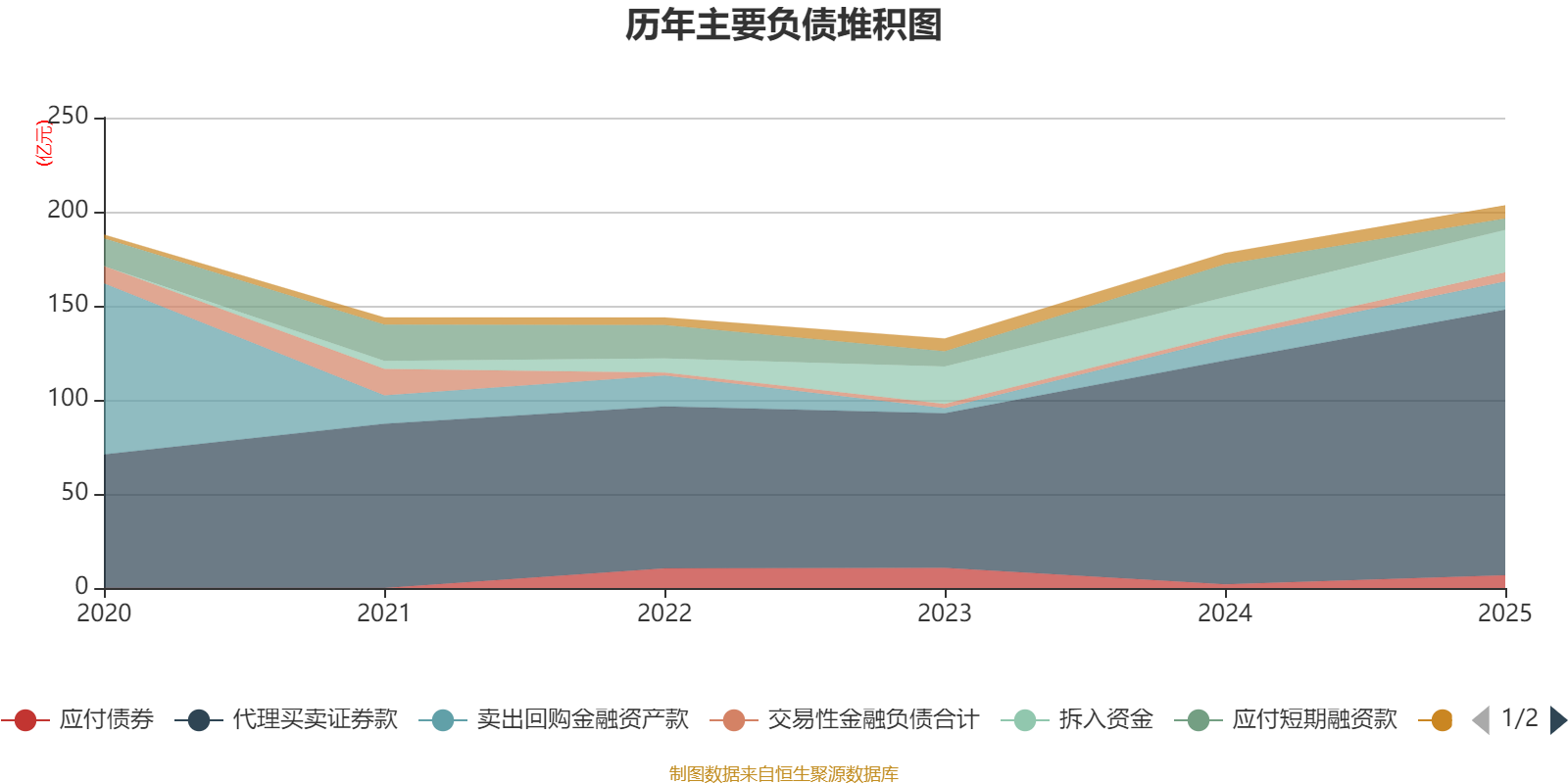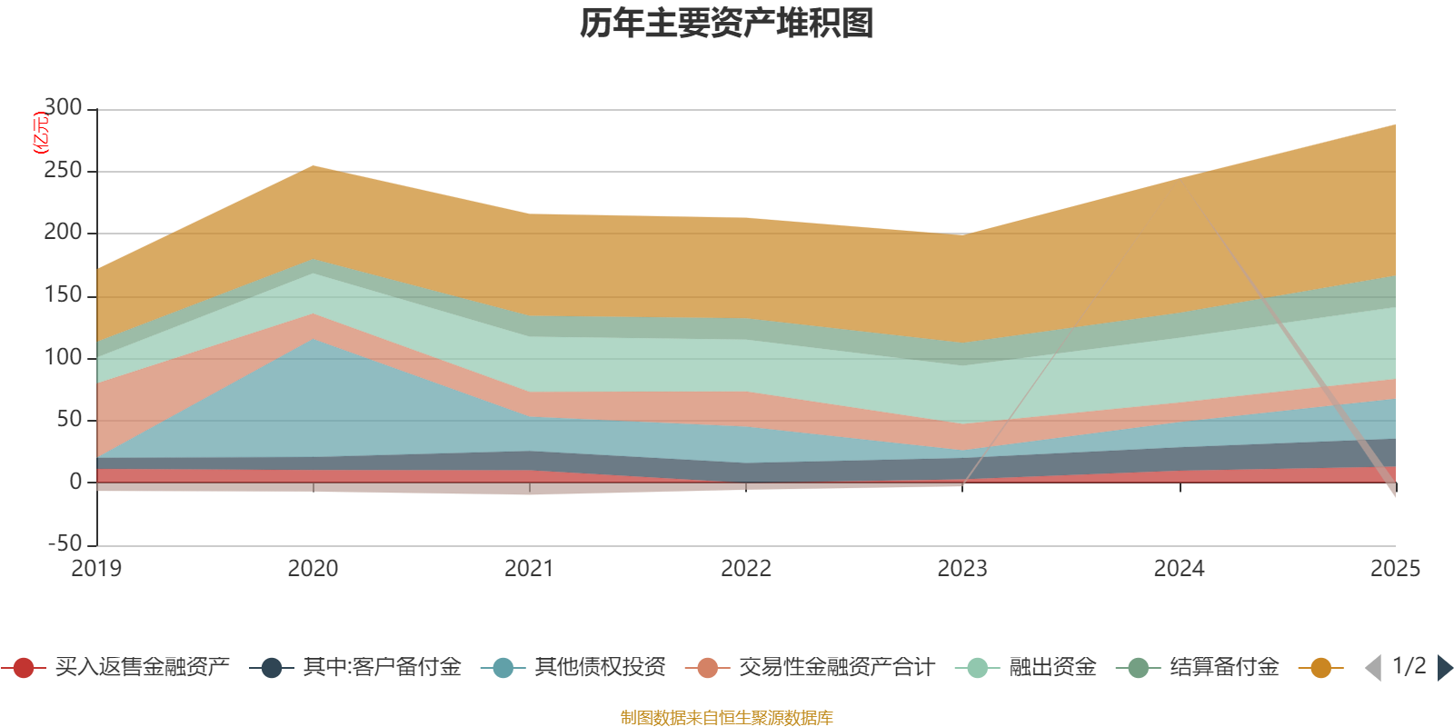 资产重大变化方面,截至2025年末,公司其他债权投资较上年末增加58.51%,占公司总资产比重上升3.35个百分点;其他权益工具投资较上年末减少100%,占公司总资产比重下降1.67个百分点;结算备付金较上年末增加27.21%,占公司总资产比重上升1.04个百分点;债权投资较上年末减少100%,占公司总资产比重下降0.83个百分点。