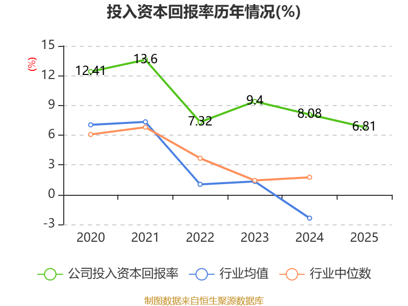 数据显示,2025年公司加权平均净资产收益率为9.9%,较上年同期下降2.86个百分点。公司2025年投入资本回报率为6.81%,较上年同期下降1.27个百分点。