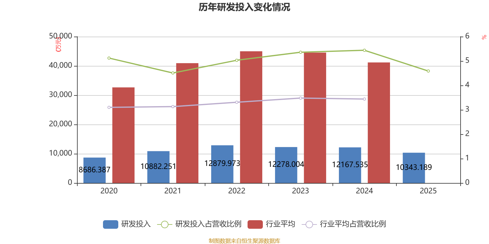 2025年全年,公司研发投入金额为1.03亿元,同比下降14.99%;研发投入占营业收入比例为4.59%,相比上年同期下降0.85个百分点。此外,公司全年研发投入资本化率为0%。
