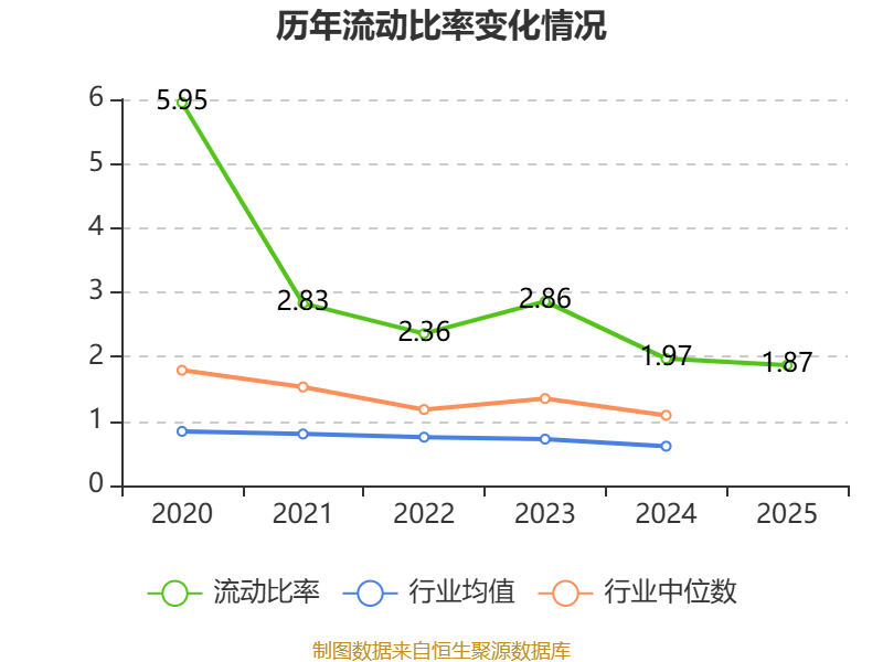 2025年,公司流动比率为1.87,速动比率为1.83。