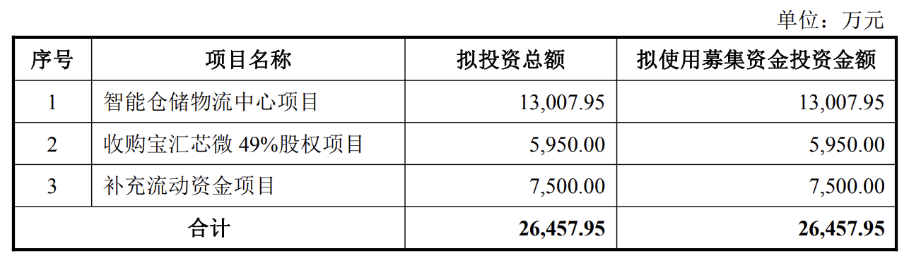 好上好(001298)3月31日晚间披露向特定对象发行A股股票预案。本次发行拟募集资金总额不超过2.65亿元,扣除发行费用后拟用于智能仓储物流中心项目、收购宝汇芯微49%股权项目及补充流动资金。