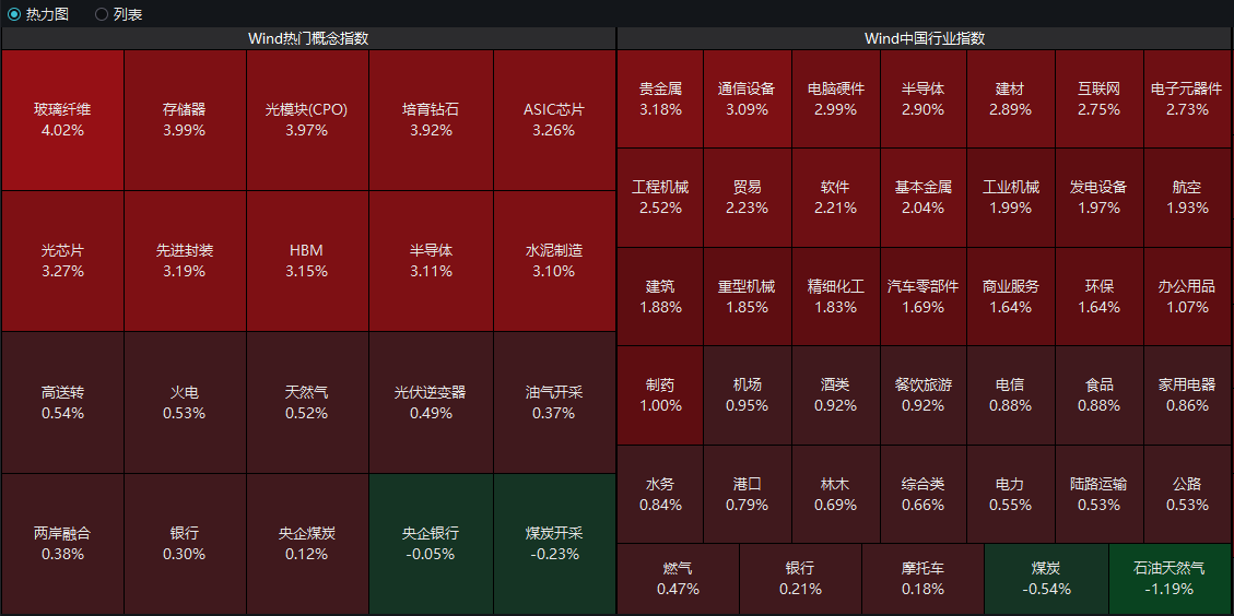 上证报中国证券网讯 4月1日,A股三大指数均大幅高开,沪指高开1.23%,深证成指高开1.88%,创业板指高开2.21%。盘面上看,半导体、算力硬件题材反弹,存储器、CPO方向领涨;贵金属、通信设备、航空等板块活跃。油气、煤炭板块震荡调整。