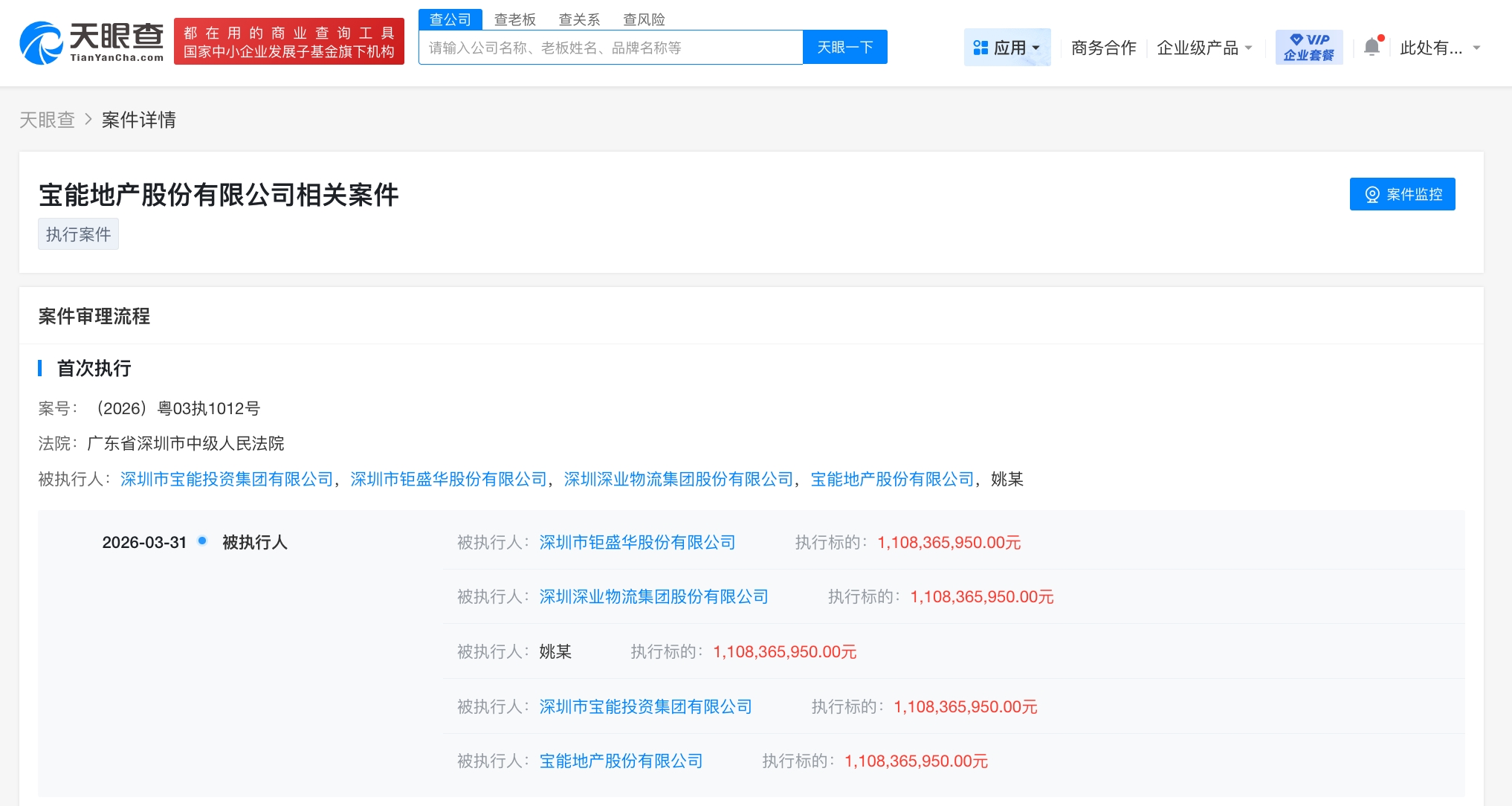 姚振华及宝能等被执行约11亿