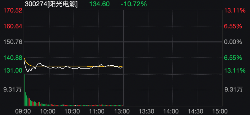 典型个股方面,阳光电源放量下跌,盘中跌幅超过13%。3月31日晚间,阳光电源发布的2025年年度报告显示,报告期内,该公司实现营业收入891.84亿元,同比增长14.55%,归属于上市公司股东的净利润为134.61亿元,同比增长21.97%。