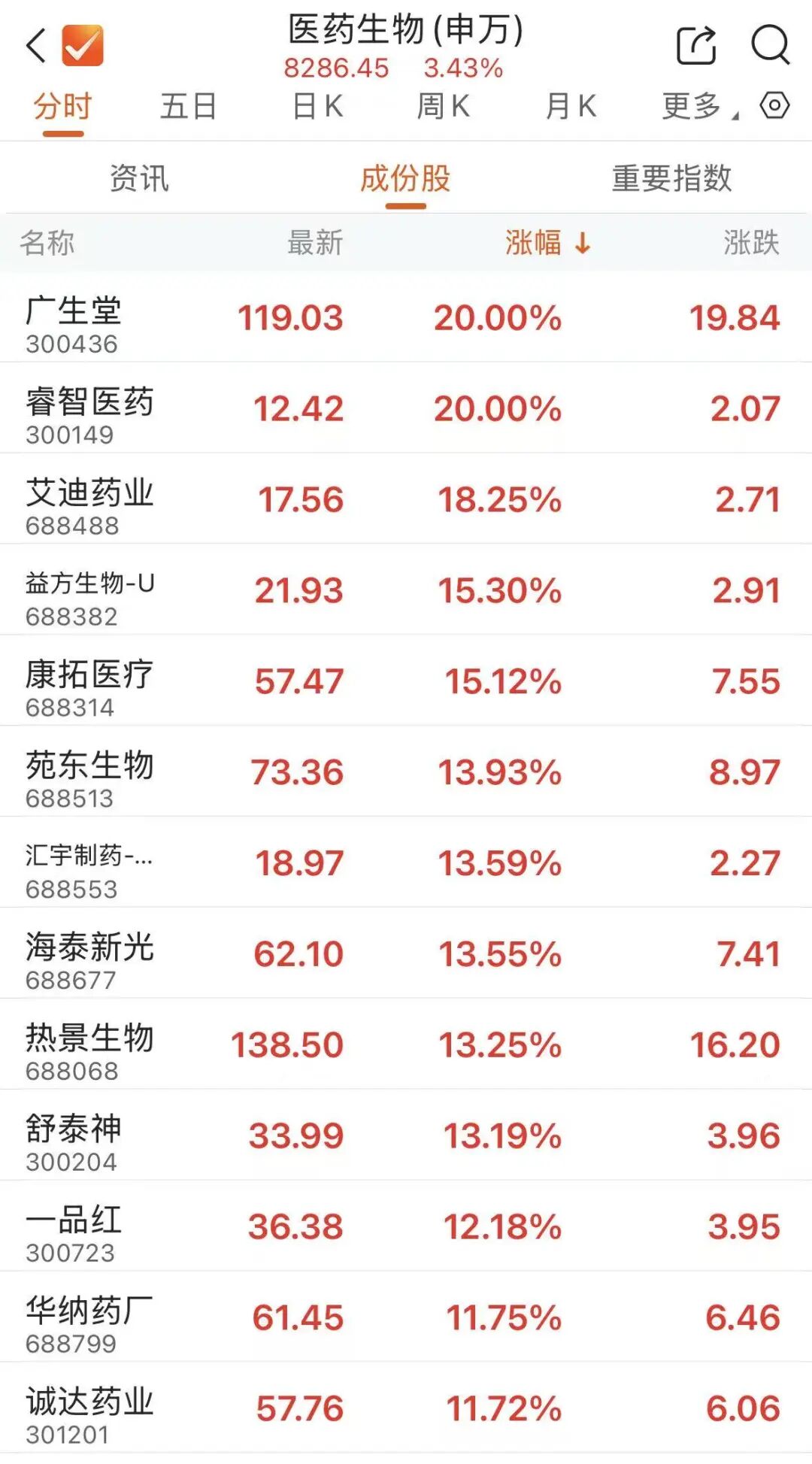 医药板块多股涨停