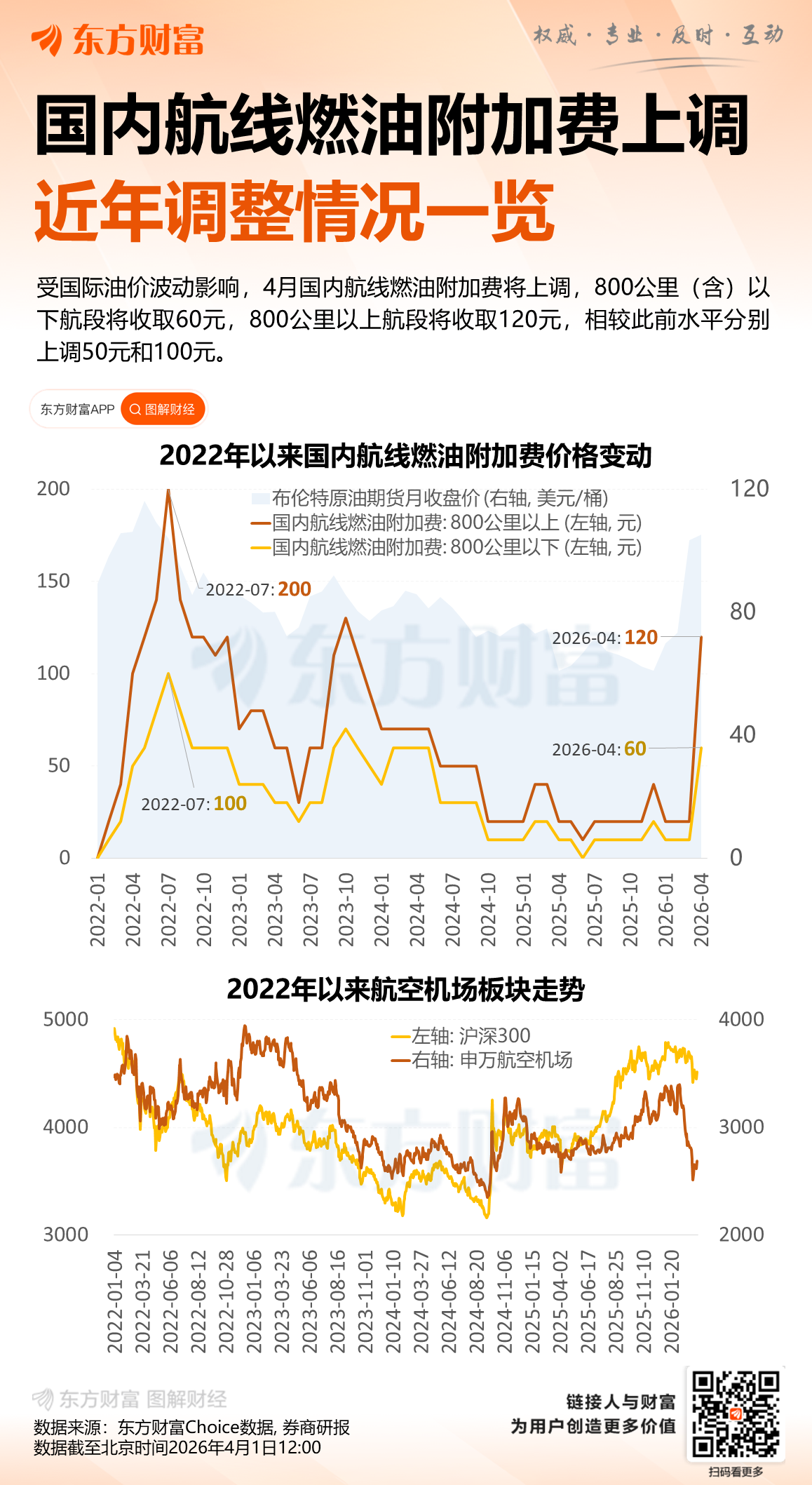 4月国内航线燃油附加费将上涨五倍!一图速览历史调整情况