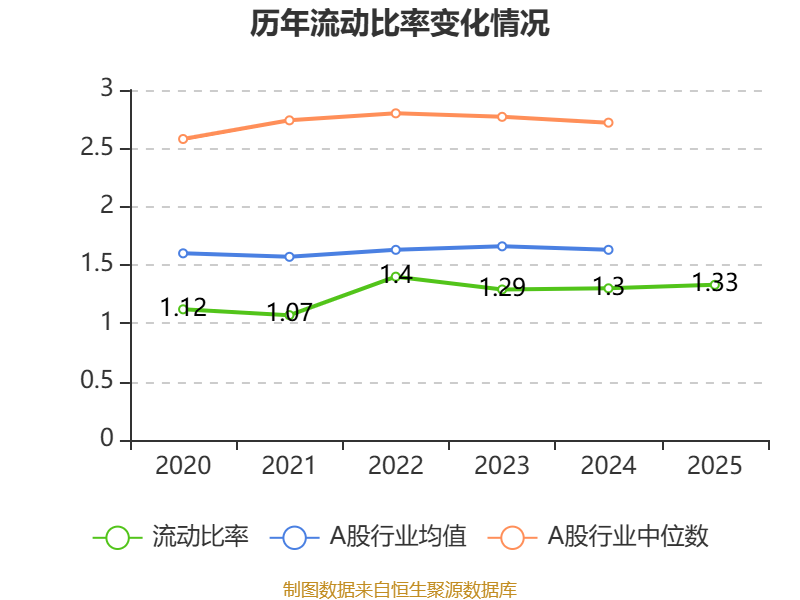2025年,公司流动比率为1.33,速动比率为0.71。