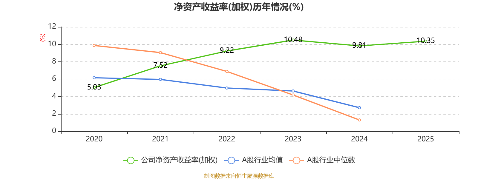 数据显示,2025年公司平均净资产收益率为10.35%,较上年同期上升0.54个百分点。