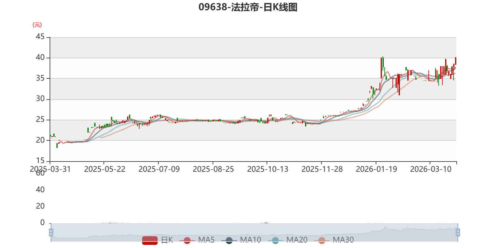 以3月31日收盘价计算,法拉帝目前市盈率(TTM)约16.53倍,市净率(TTM)约1.58倍,市销率(TTM)约1.1倍。