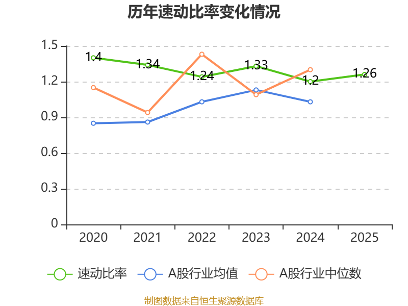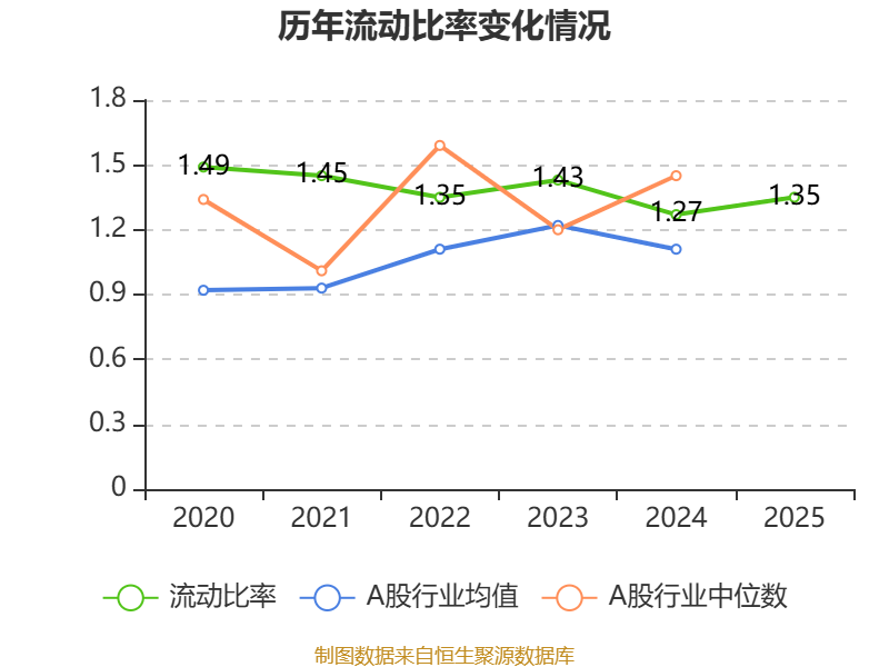 2025年,公司流动比率为1.35,速动比率为1.26。