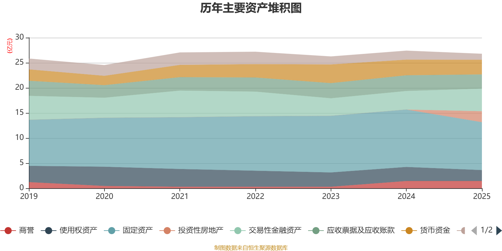 资产重大变化方面,截至2025年末,公司交易性金融资产占公司总资产的8.12%,上期末为0;固定资产较上期末减少16.53%,占公司总资产比重下降6.08个百分点;交易性金融资产较上期末增加21.62%,占公司总资产比重上升3.3个百分点;使用权资产较上期末减少22.09%,占公司总资产比重下降2.07个百分点。