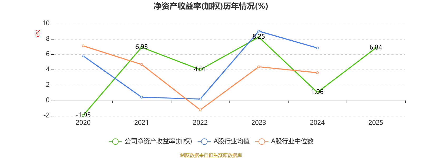 数据显示,2025年公司平均净资产收益率为6.84%,较上年同期上升5.78个百分点。