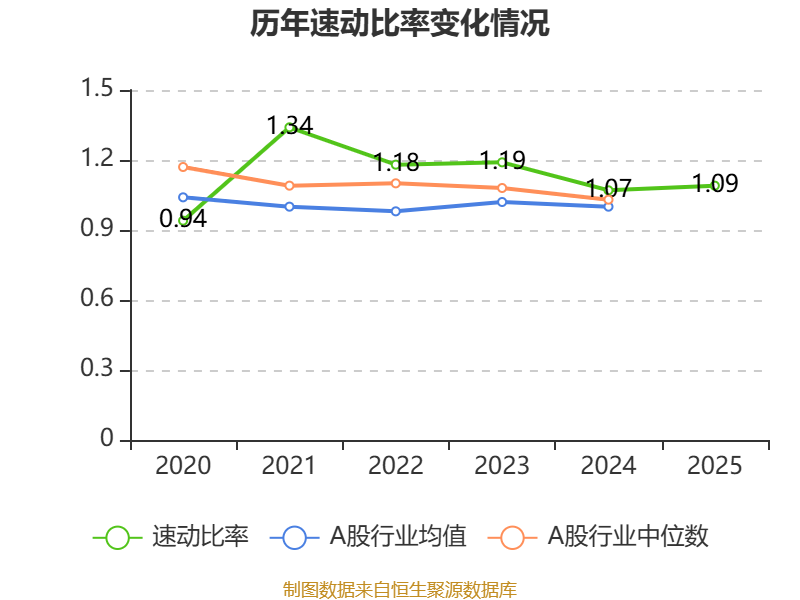 2025年,公司流动比率为1.12,速动比率为1.09。