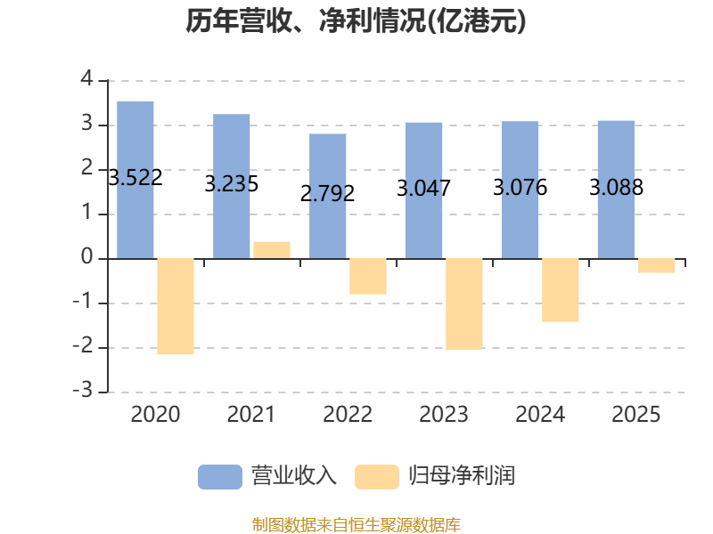 中证智能财讯新沣集团(01223)3月31日披露2025年度报告。报告期内,公司实现营业收入3.09亿港元,同比增长0.39%;归母净利润亏损3294.5万港元,上年同期亏损1.43亿港元;据报告显示,新沣集团基本每股收益为-0.0111港元,平均净资产收益率为-1.41%。