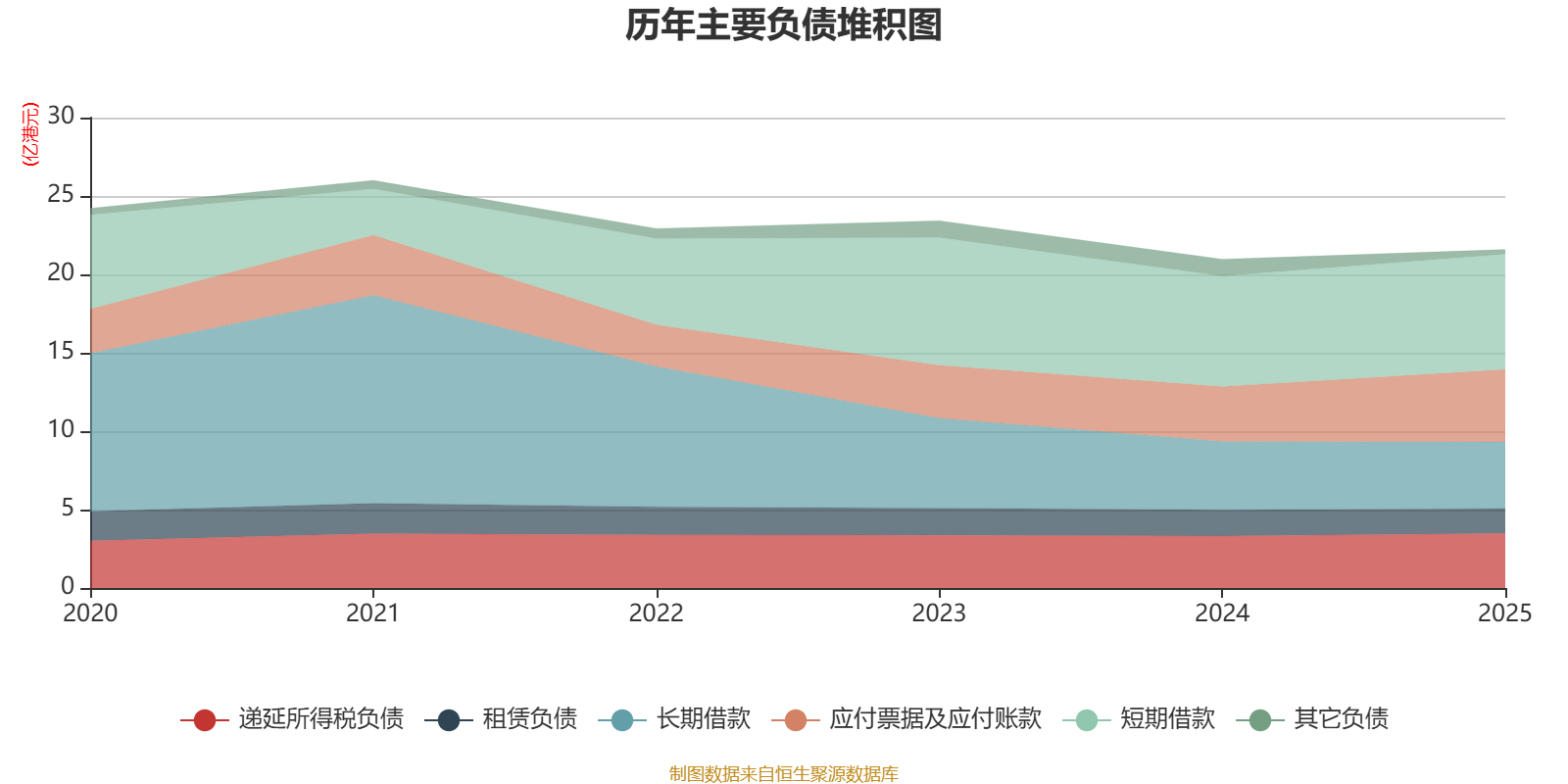 负债重大变化方面,截至2025年末,公司应付票据及应付账款较上期末增加32.29%,占公司总资产比重上升2.31个百分点;其他应付款(含利息和股利)较上期末减少88%,占公司总资产比重下降1.13个百分点;长期借款较上期末减少2.42%,占公司总资产比重下降0.46个百分点;应交税费较上期末减少63.53%,占公司总资产比重下降0.44个百分点。