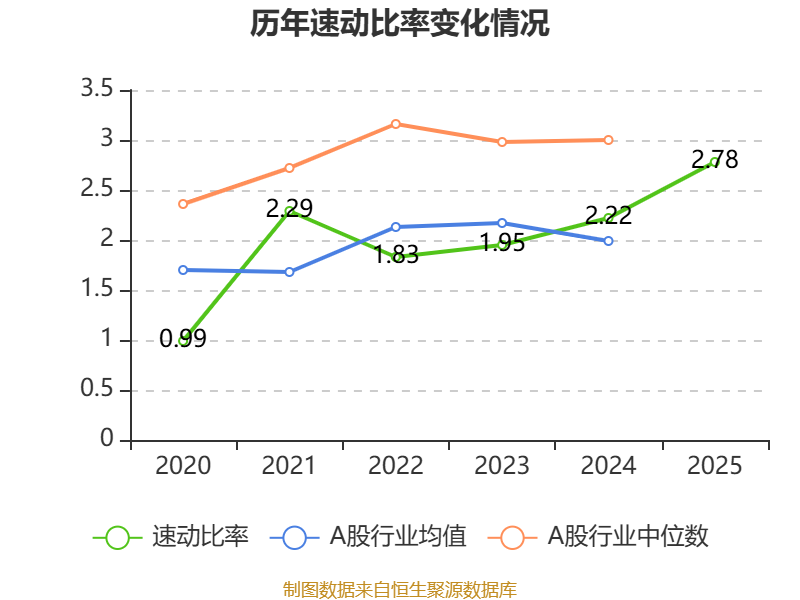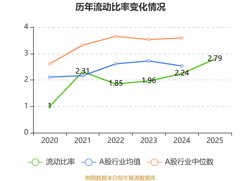 2025年,公司流动比率为2.79,速动比率为2.78。