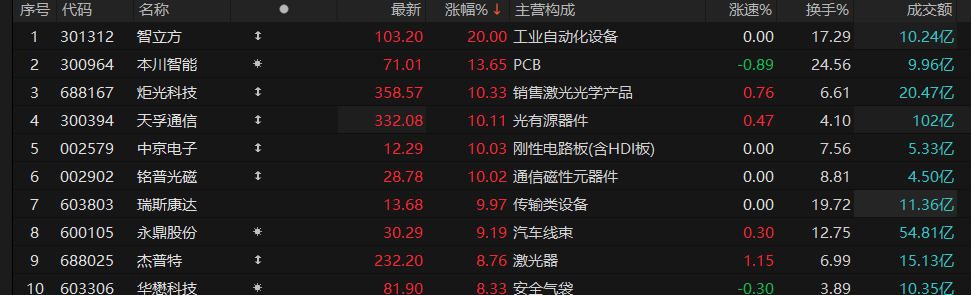 4月1日,CPO概念午后持续拉升,智立方“20cm”涨停续创历史新高,本川智能、炬光科技、天孚通信涨超10%,中京电子、铭普光磁、瑞斯康普涨停。