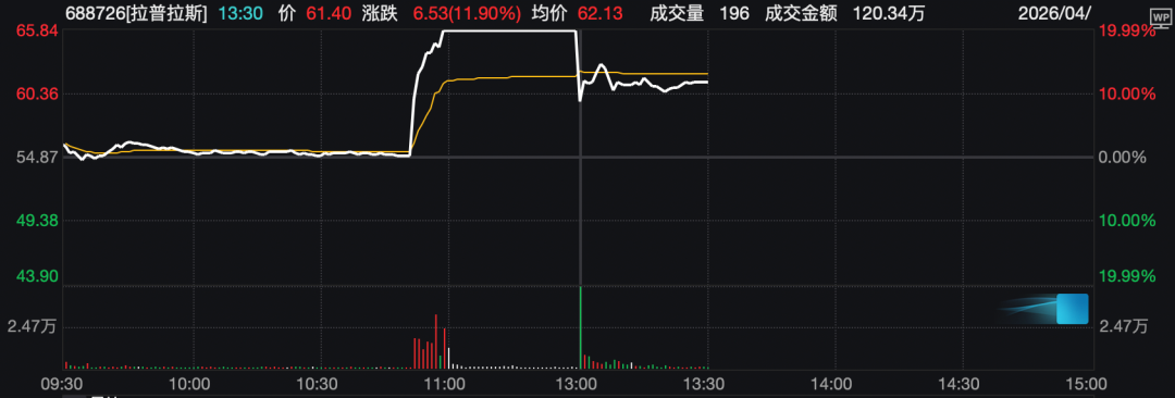 4月1日上午,拉普拉斯盘中直线拉升20%涨停,午后,公司股价快速回落,目前涨幅收窄至约12%。
