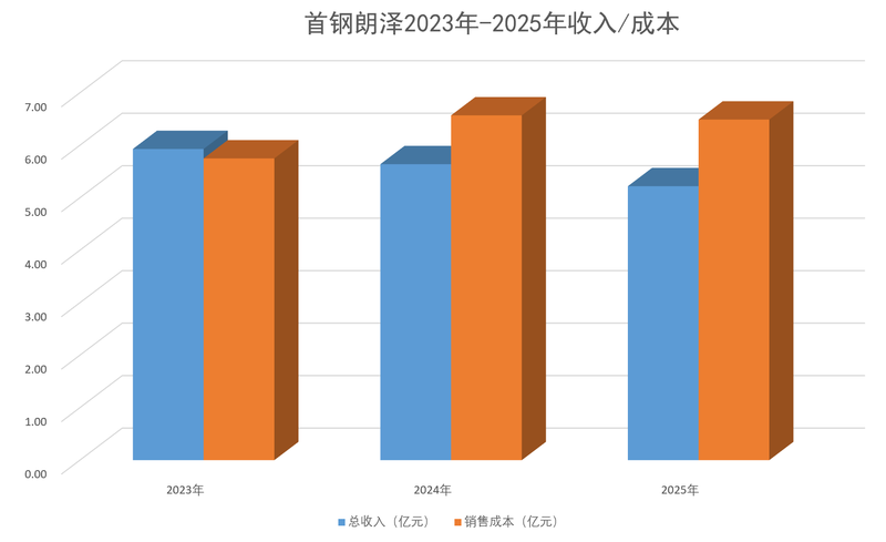 盈利端的表现更是节节败退。2023年,首钢朗泽仍有约1771.2万元的毛利,但2024年毛利直接由正转负,亏损达9334.5万元,2025年亏损进一步扩大至1.28亿元;净利润的亏损幅度更是逐年飙升,从2023年的约1.1亿元,扩大至2024年的约2.46亿元、2025年的约3.25亿元。