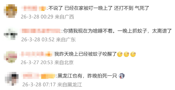 消息面上,“今年蚊子可能迎来史诗级加强”冲上热搜。不少网友表示,“被叮到睡不着”。