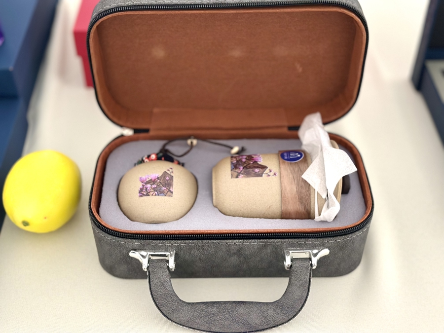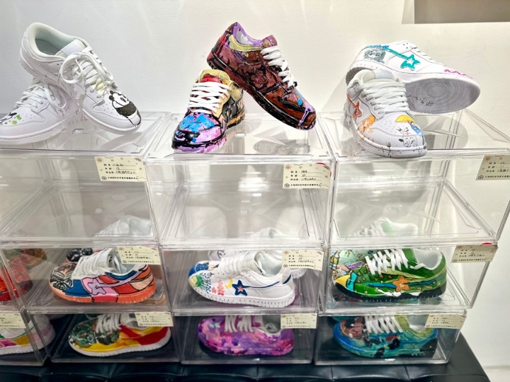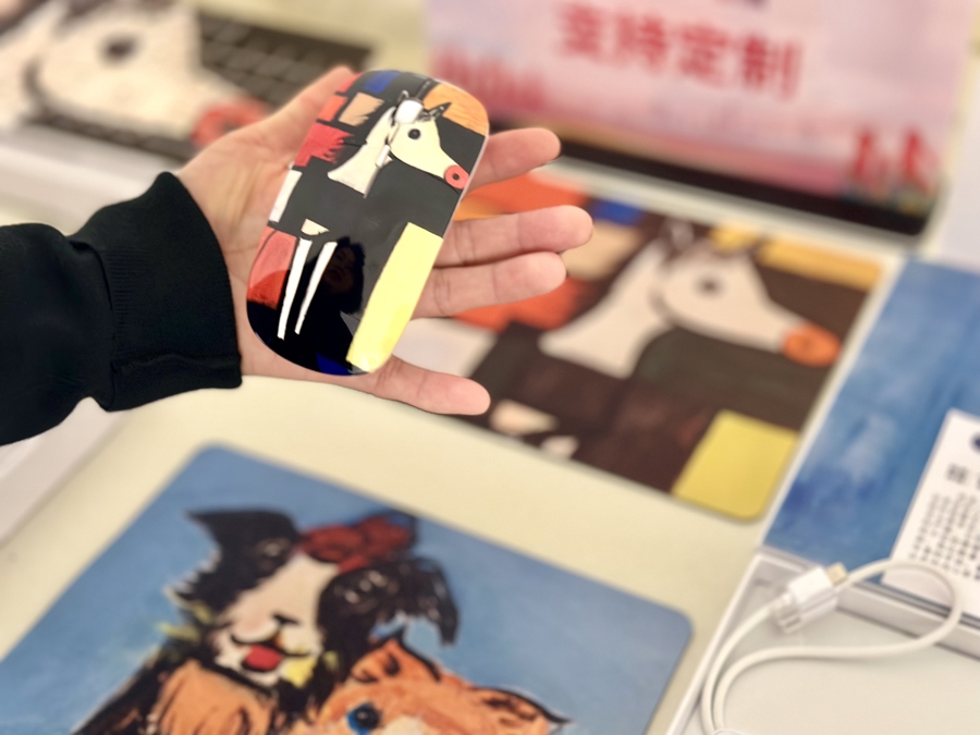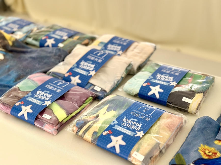 而在“文创展示区”,孤独症儿童的画作被印在了丝巾、跑鞋、鼠标、键盘、伞、茶杯、充电宝等各种生活用品上,现场还可接受爱心人士或企业定制文创礼品,展示了“展品变商品”的一条链路。据介绍,前期已有华为等企业定制了印有孤独症儿童画作的文创礼品,所得款项和现场爱心售卖所得都将反哺给孤独症家庭,帮助他们减轻负担。