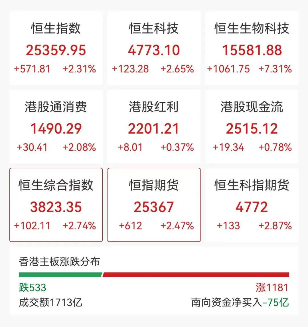 港股方面,截至发稿,恒生指数涨2.31%,恒生科技指数涨2.65%。科技股普遍上扬,蔚来盘中涨超10%,哔哩哔哩、华虹半导体、零跑汽车、地平线机器人、中芯国际涨超5%。