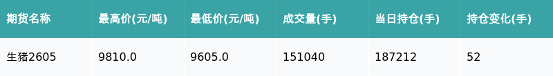 生猪主力合约收跌2.88%
