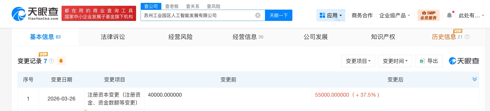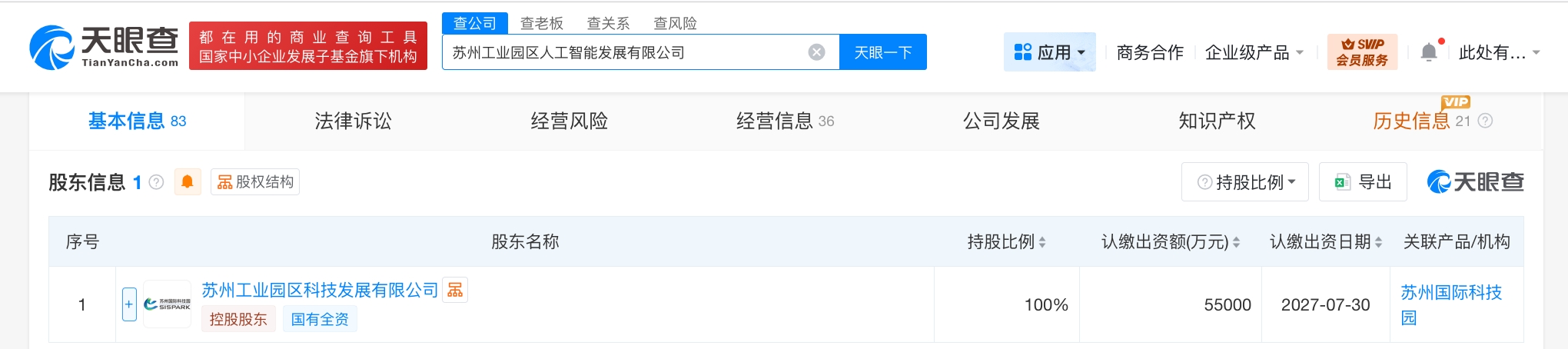 苏州工业园区人工智能发展公司增资至5.5亿