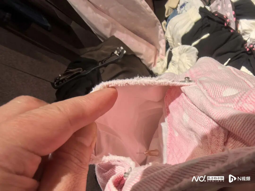 赵女士提供的图片显示,裤子的裤袋里有一根针头。