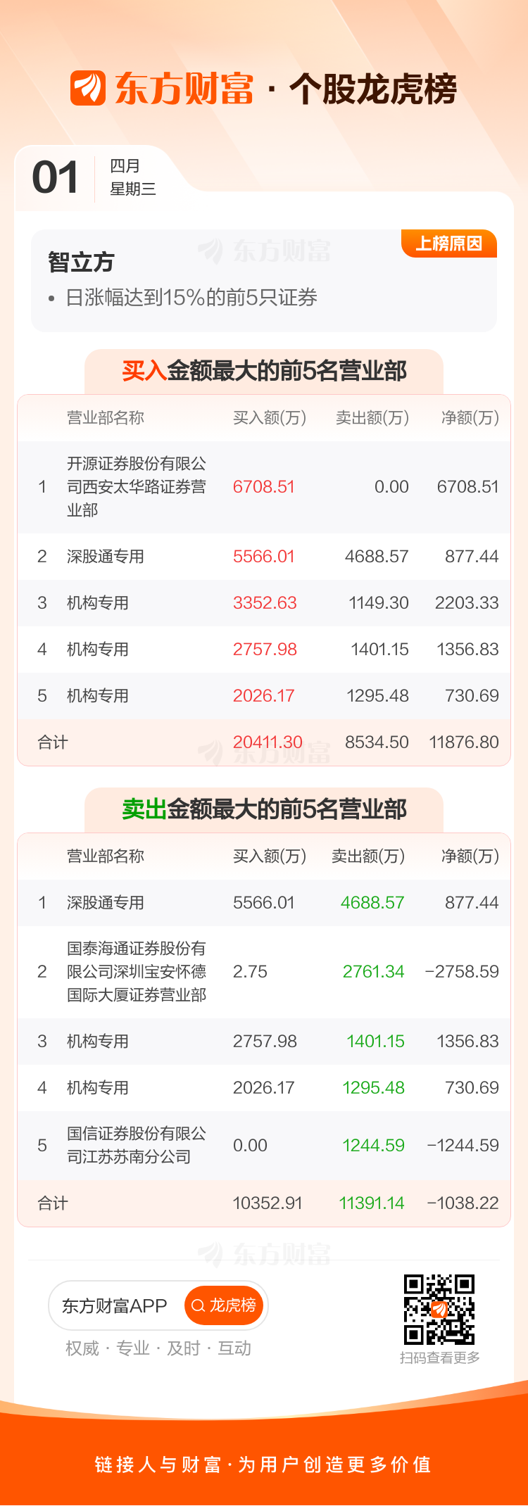 智立方(301312)龙虎榜数据(04-01)