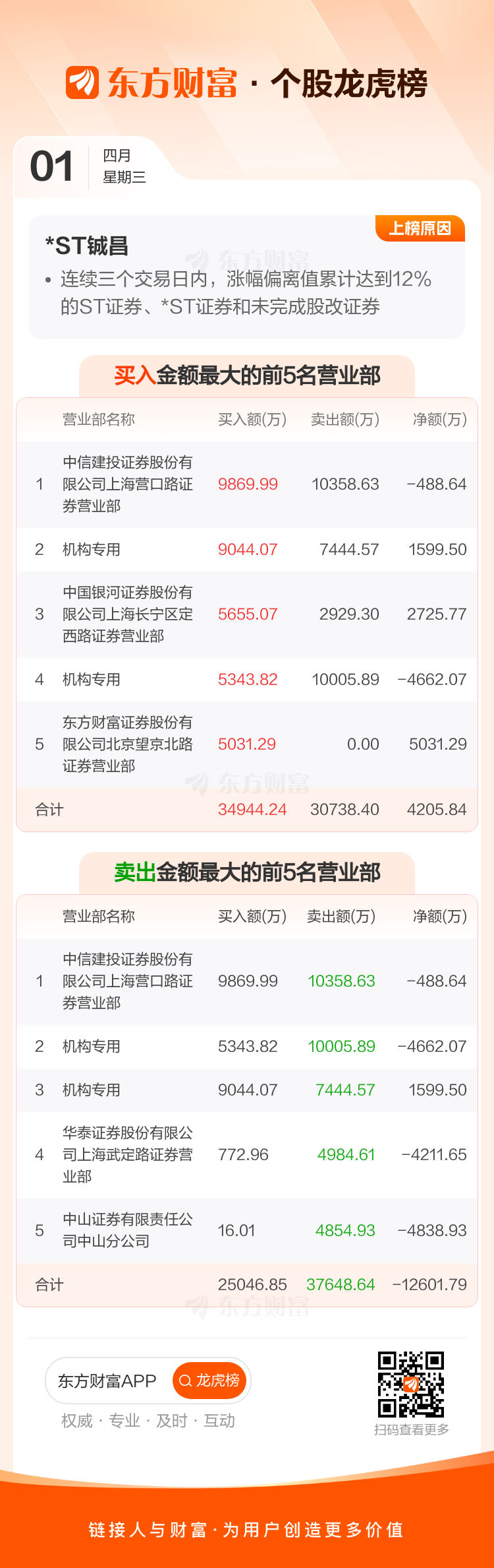 *ST铖昌(001270)龙虎榜数据(04-01)