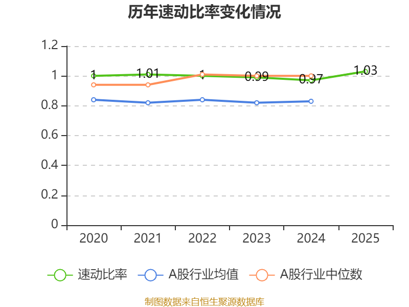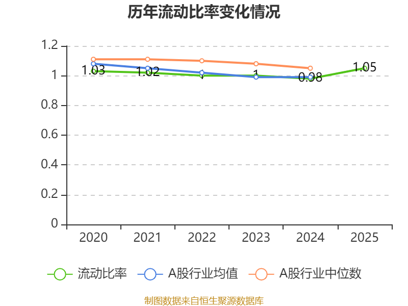 2025年,公司流动比率为1.05,速动比率为1.03。