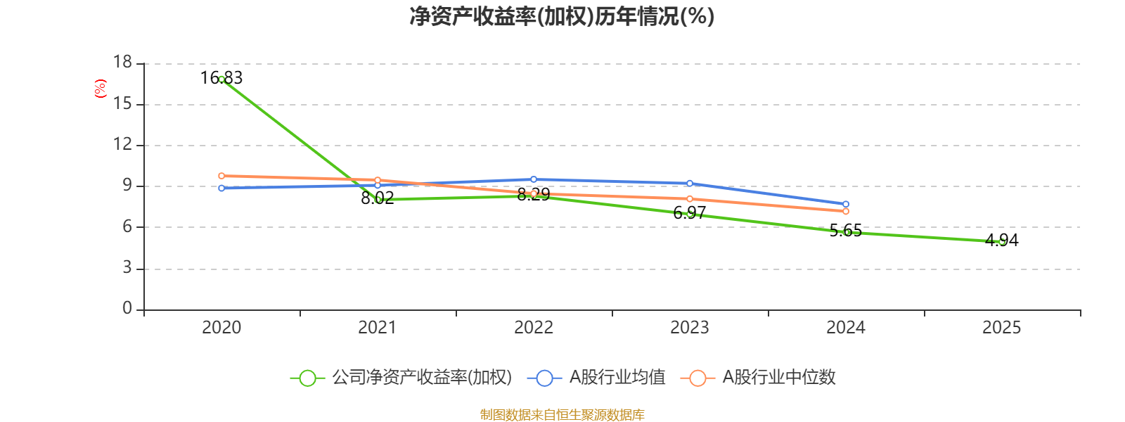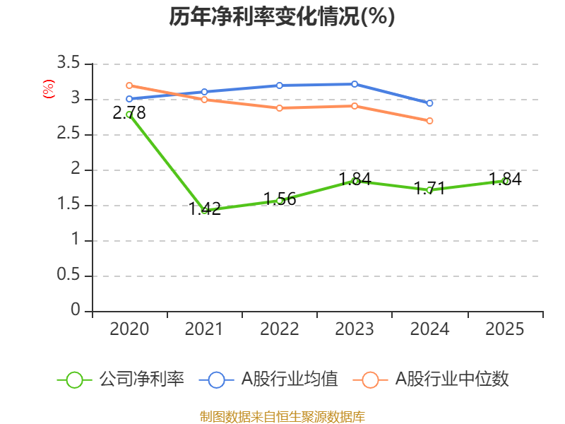 数据显示,2025年公司平均净资产收益率为4.94%,较上年同期下降0.71个百分点。