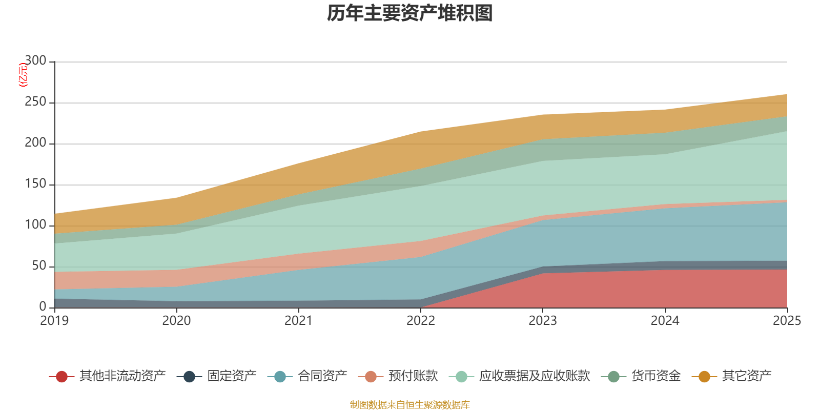 资产重大变化方面,截至2025年末,公司应收票据及应收账款较上期末增加37.58%,占公司总资产比重上升6.95个百分点;货币资金较上期末减少30.59%,占公司总资产比重下降3.88个百分点;其他非流动资产较上期末增加0.99%,占公司总资产比重下降1.21个百分点;预付账款较上期末减少44.64%,占公司总资产比重下降1.04个百分点。