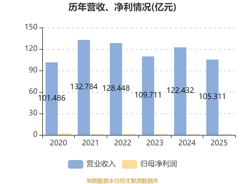 中证智能财讯山西安装(02520)3月30日披露2025年度报告。报告期内,公司实现营业收入105.31亿元,同比下降13.98%;归母净利润1.38亿元,同比下降9.92%;据报告显示,山西安装基本每股收益为0.1元,平均净资产收益率为4.94%。公司2025年分配预案为:每股派息0.02038元。