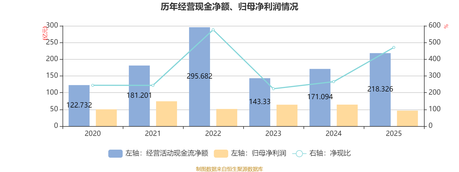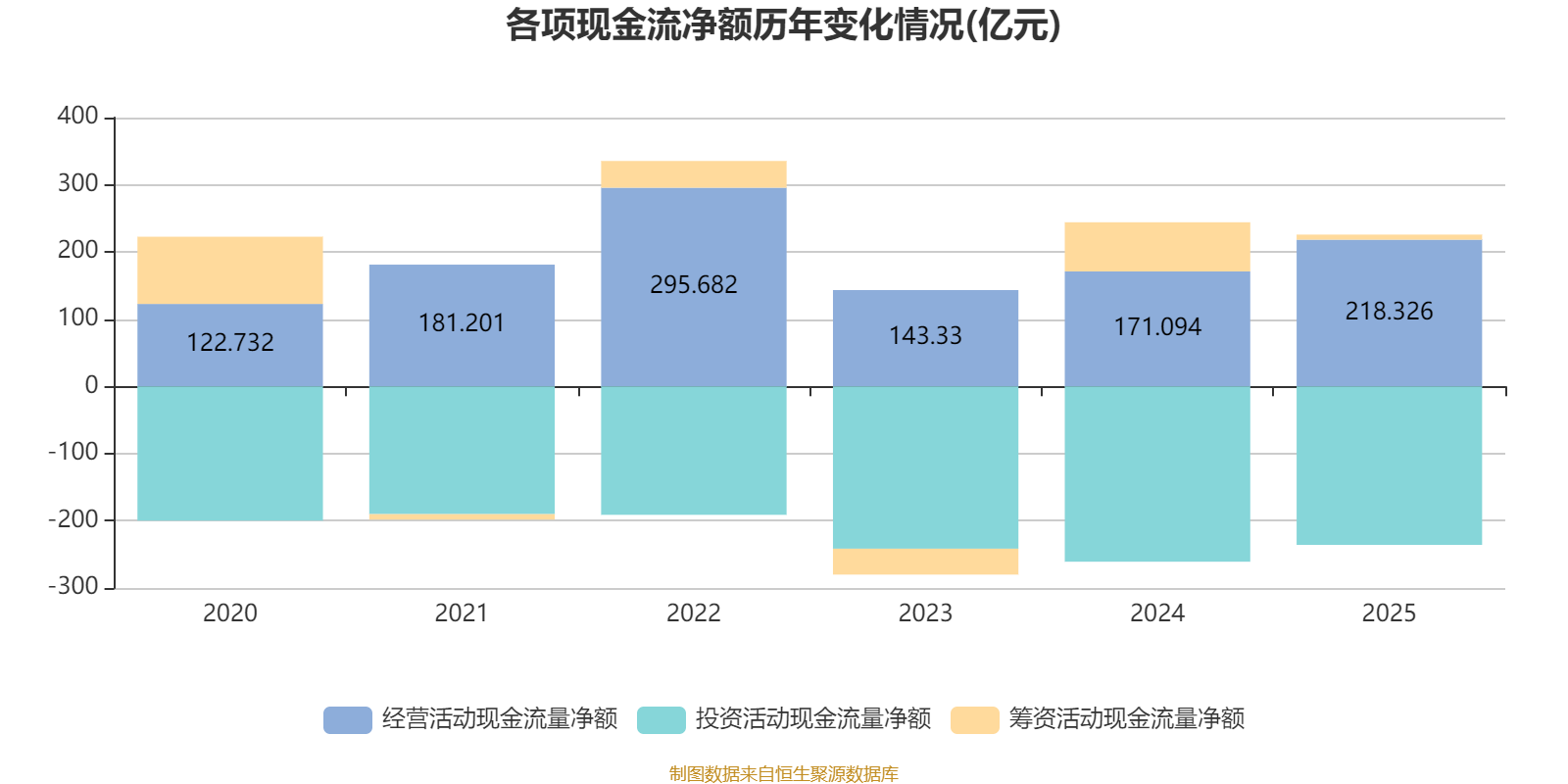 2025年,公司经营活动现金流净额为218.33亿元,同比增长27.61%;筹资活动现金流净额7.58亿元,同比减少65.53亿元;投资活动现金流净额-235.81亿元,上年同期为-260.85亿元。